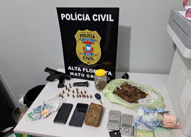 Suspeito de tráfico é preso em flagrante com arma, munições e drogas em MT
