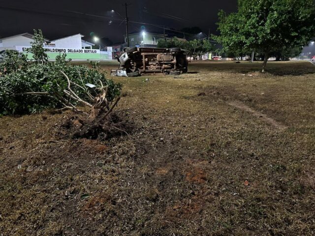 Segundo informações, a mulher estava trafegando pela via sentido bairro, quando perdeu o controle do veículo, invadiu o canteiro derrubando duas arvores e capotou.