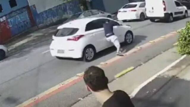 Novo modus operandi: uma gangue foi flagrada quebrando vidro de carros com golpe de cotovelo, em São Paulo. Câmeras de segurança registraram o momento em que um criminoso aguarda o melhor momento para atacar e, de repente, ele se desloca até o veículo, aplica a cotovelada e rouba o celular. A Secretaria de Segurança Pública afirmou que o crime ainda não foi registrado. Mas, o vídeo foi encaminhado para investigação.