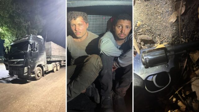A ação ocorreu na noite deste sábado (21), quando uma equipe do Grupo de Apoio da Polícia Militar foi informada sobre a localização de duas carretas roubadas.