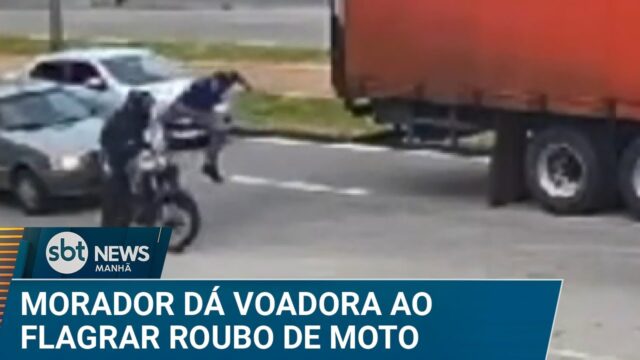 Morador dá voadora e impede fuga de ladrão de moto em SP; veja