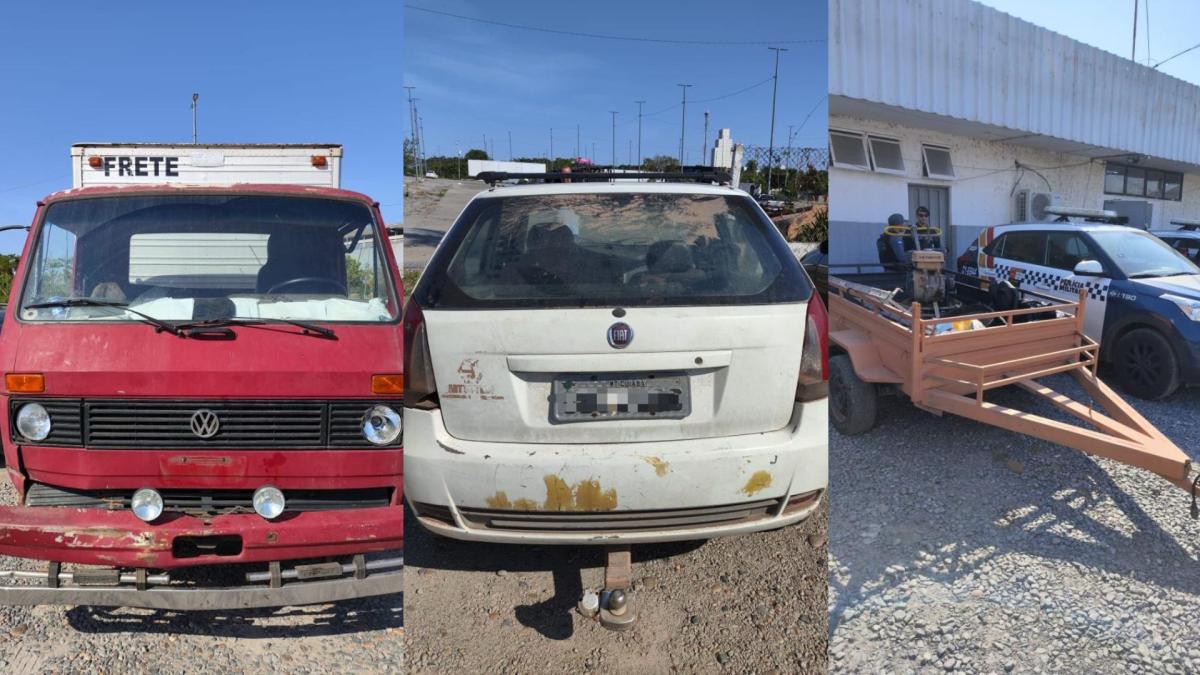 Após deter os suspeitos, buscas foram realizadas nos veículos. Durante a abordagem no automóvel Fiat Pálio, foi identificado se tratar de um produto de furto no Parque Geórgia, no dia 30 de setembro, assim como o caminhão furtado de uma transportadora, no dia 6 deste mês, no mesmo bairro onde se encontra o barracão.