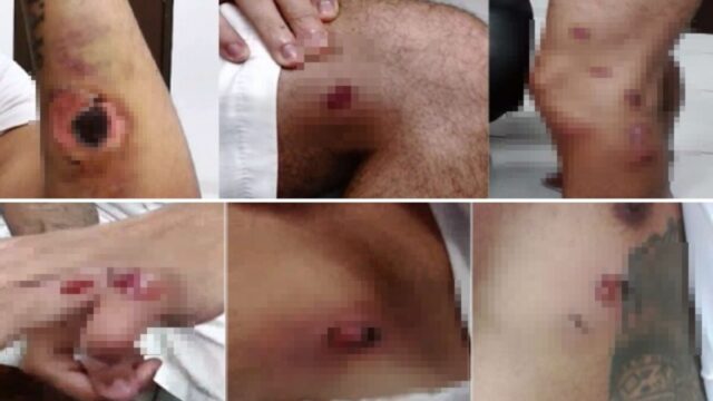 Um dos presos, apresentou duas lesões causadas por disparos de bala de borracha, uma no dedo e outra na perna, ocorridas há cerca de um mês. Segundo ele, os disparos aconteceram quando presos gritavam por atendimento médico. “A gente começou a gritar porque precisava de socorro, aí eles entraram atirando”, afirmou.